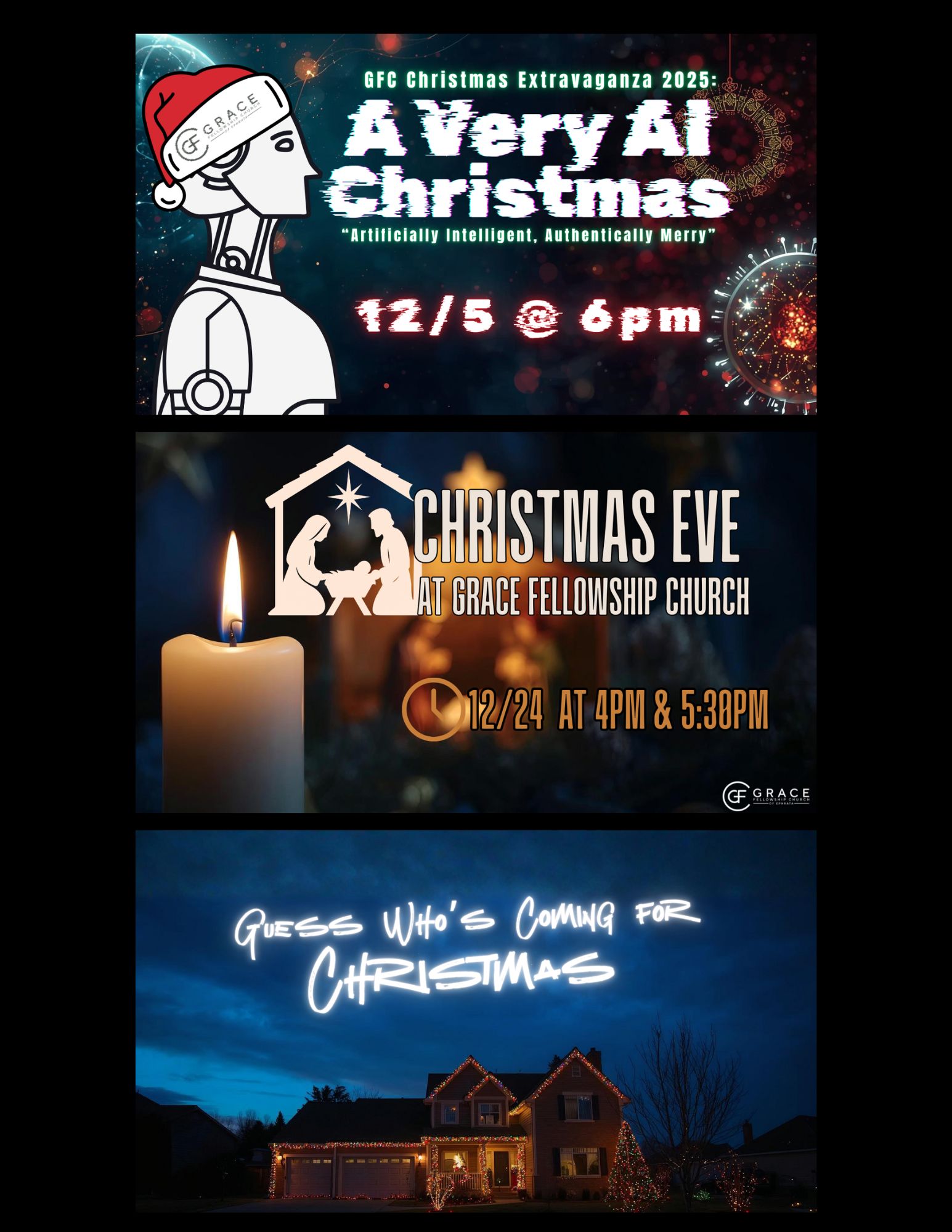An all-ages, family-friendly night packed with games, music, giveaways, a gospel message, and cookies & cider to finish it all off. Come discover the true meaning of Christmas—no algorithm needed.